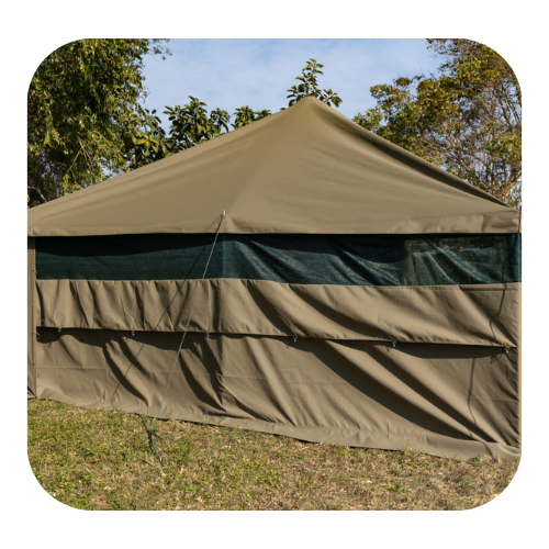 Canvas tents, high quality all weather tents designed with 320g to 400g canvas, double stitched seams to provide extra strength for long-lasting durability. Our tents are designed and manufactured with the most technologically advanced equipment.